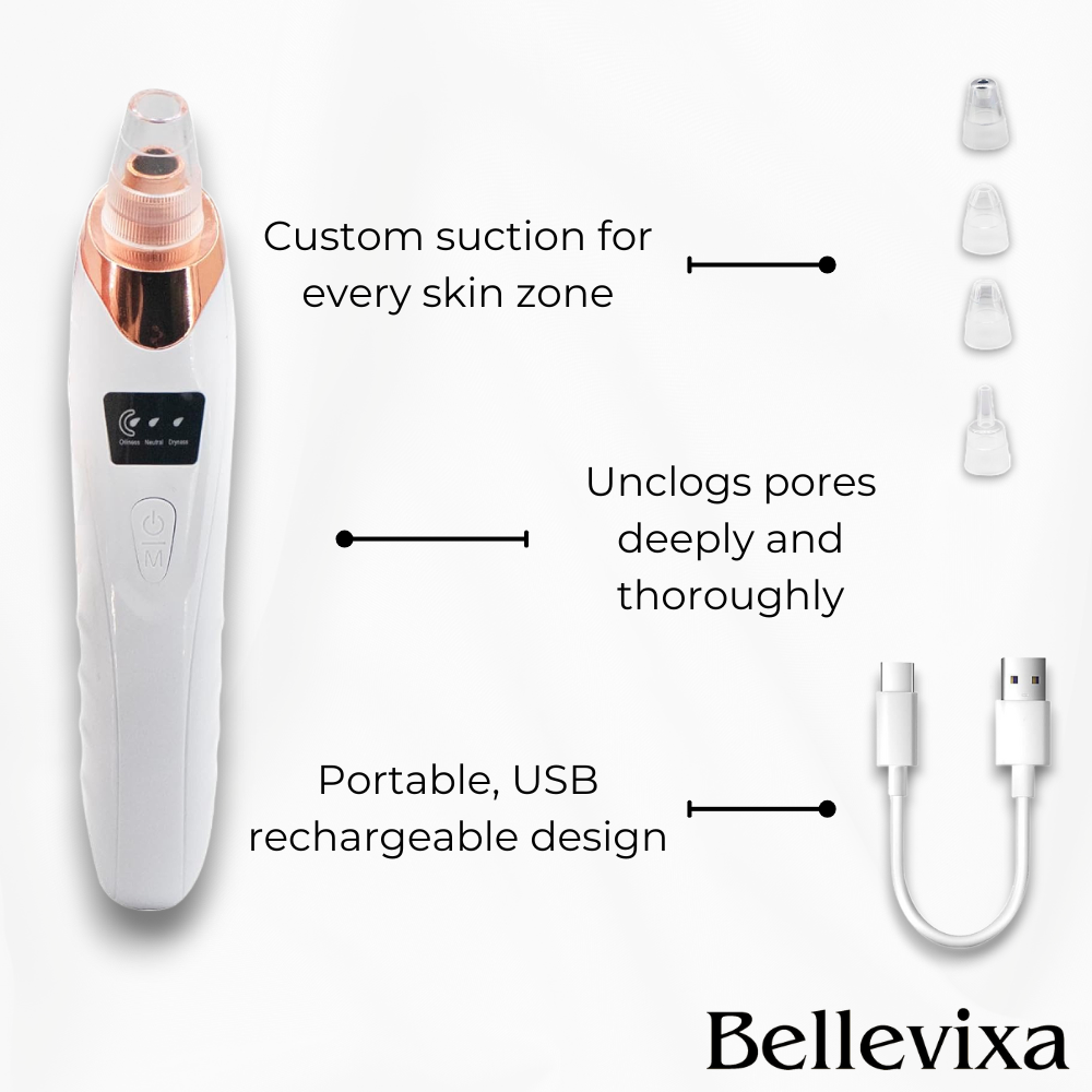 DermaVacuum™ is a powerful yet gentle skincare device designed to deliver professional-grade pore cleaning at home. It features strong suction, 3 adjustable strength levels, and 3 specialized beauty heads tailored for different skin types and areas. Whether you're battling oily T-zones, sensitive cheeks, or dull skin texture—this tool gives you the control to treat your skin right.